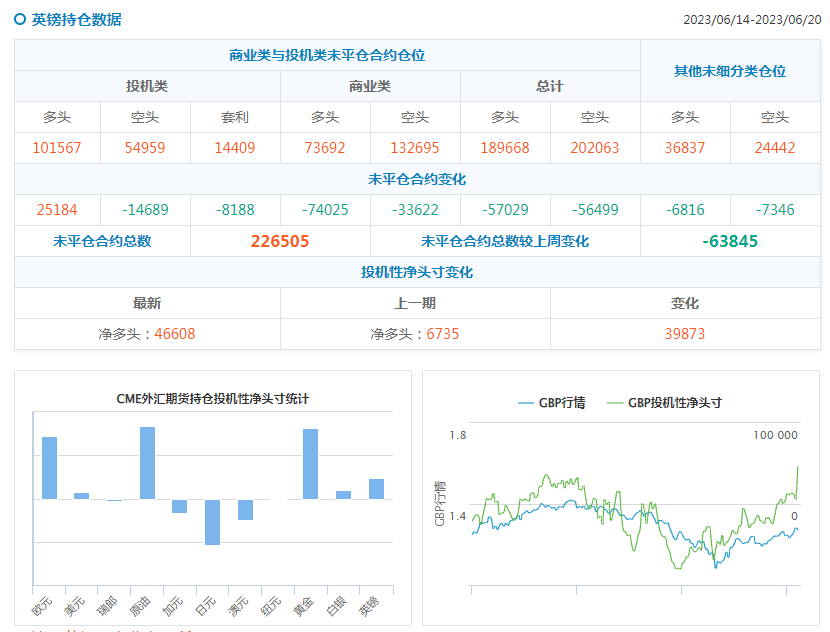 截至6月20日当周,日元净空头头寸减少107656手合约,欧元净多头头寸为144649份合约,英镑净多头头寸为46608手合约。