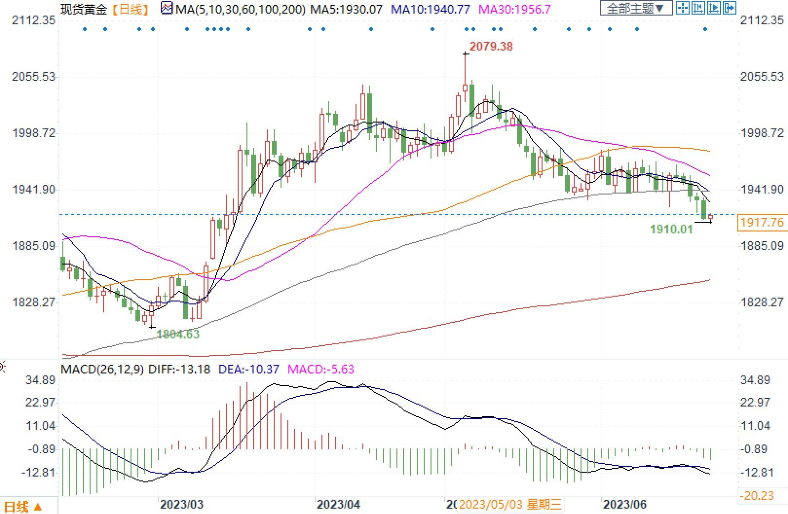 北京时间6月23日16:00,现货黄金报1917.24美元/盎司