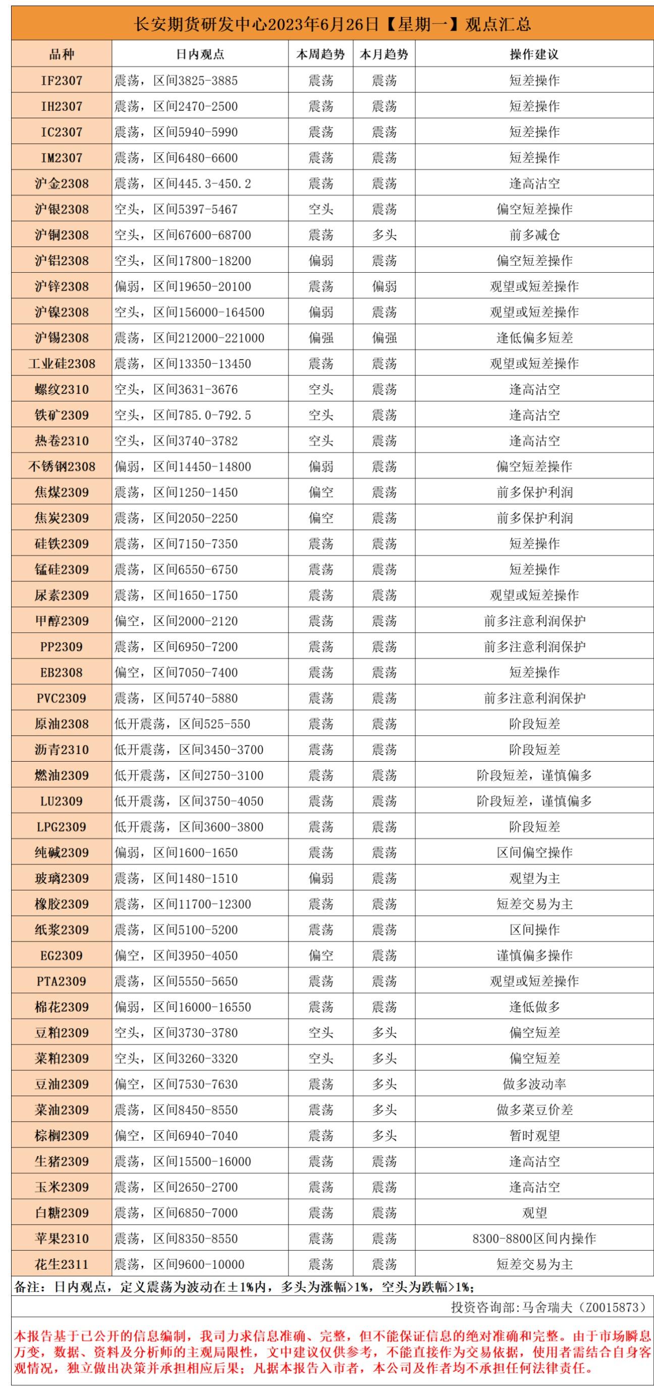 标题:长安期货6月26日早间看盘