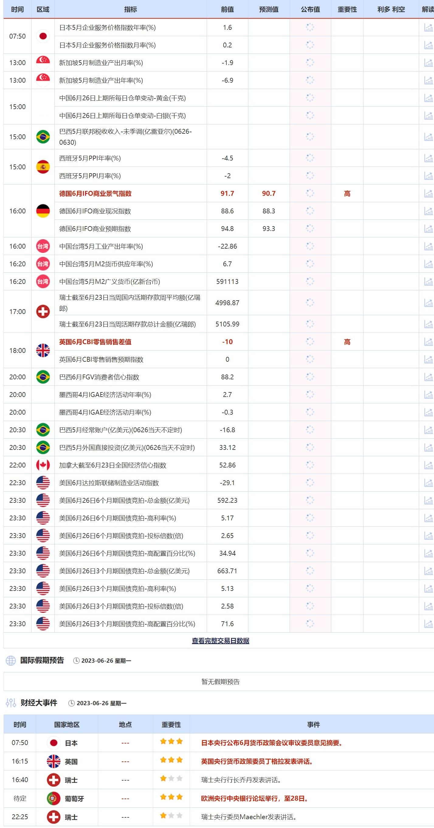后续及时更新的财历数据请关注:【汇通网6月26日财经日历】