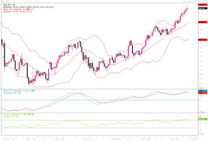 周四(6月29日)美元兑日元周四触及七个多月的高点144.89。美联储主席鲍威尔与欧洲央行总裁拉加德、日本央行总裁植田和男和英国央行总裁贝利在欧洲央行的会议上发言。鲍威尔指出,今年有可能加息两次,并且不排除在7月份加息的可能性。鲍威尔对于继续加息鹰气十足。相比之下,植田和男重申,在实现通胀率可持续地达到2%,同时薪资有足够增长方面,“仍有一段距离”。薪资增长加快是日本央行为考虑退出超宽松刺激政策所设定的条件。显见日本央行在货币政策跳动上,态度仍然顽固保持着宽松的态度。美元与日元利差的进一步拉大,无疑继续刺激着套利交易的前行。日线图上,美元/日元继续沿着短期均线上方上扬,但已逼近日本央行上次初步干预的警戒线145水平,需警惕日本央行的随时进场干预所带来的下行风险。若日本央行毫无动作,一旦升穿145水平,进一步前进目标恐会瞄向150。