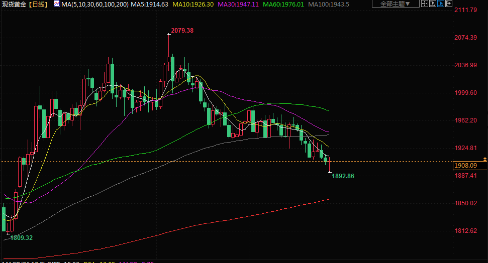 数据公布后,金价自3月中旬以来首次跌破1900美元,因