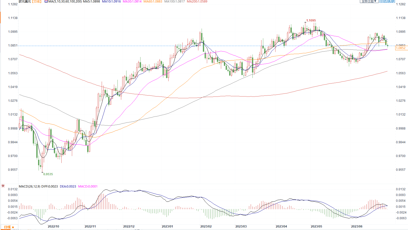 欧元兑美元日图走势