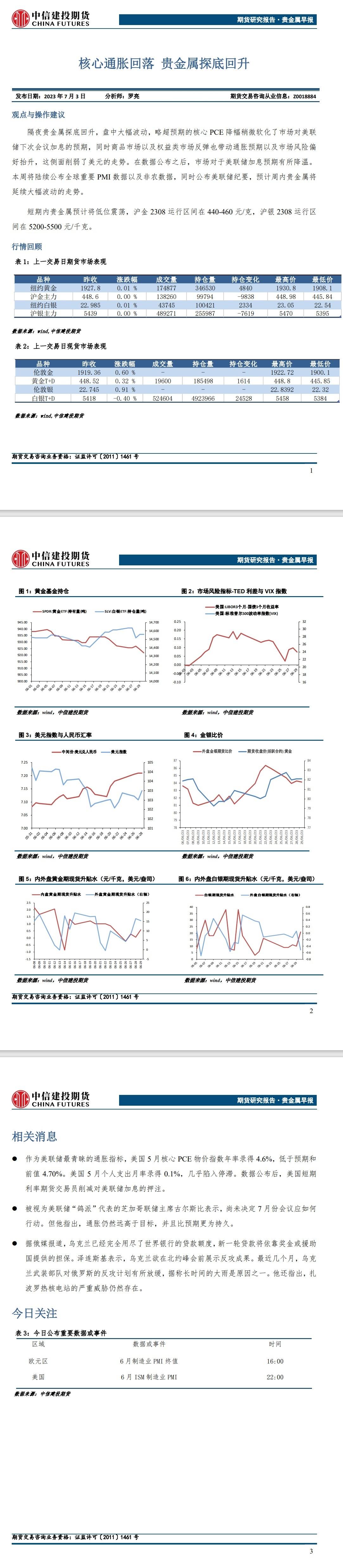 标题:中信建投期货7月3日贵金属早报:核心通胀回落 贵金属探底回升