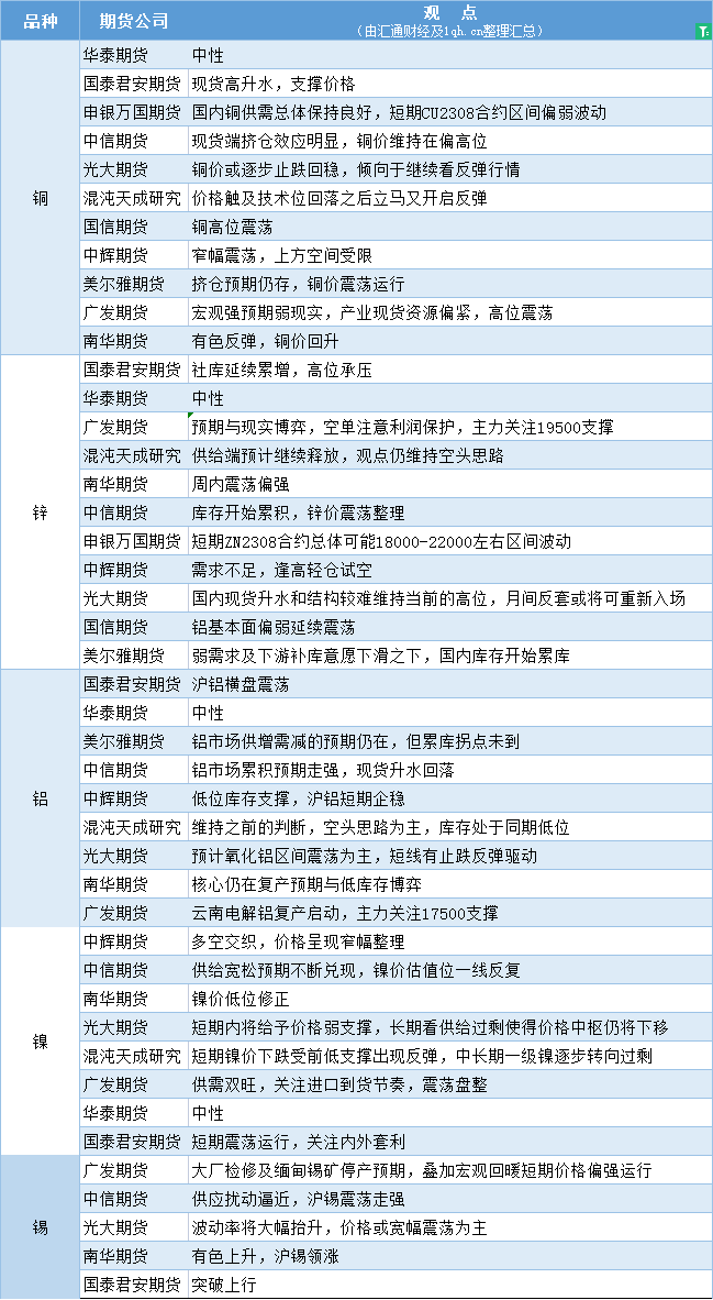 汇通财经APP讯——期货公司观点汇总一张图:7月4日有色系(铜、锌、铝、镍、锡等)