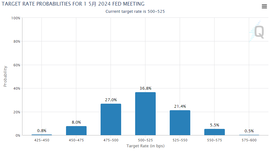 但根据CME的“联储观察”工具,投资者预计美联储7月份加息25个基点的可能性为89.9%,然后利率将保持在5.25%-5.5%区间,直到2024年5月降息。