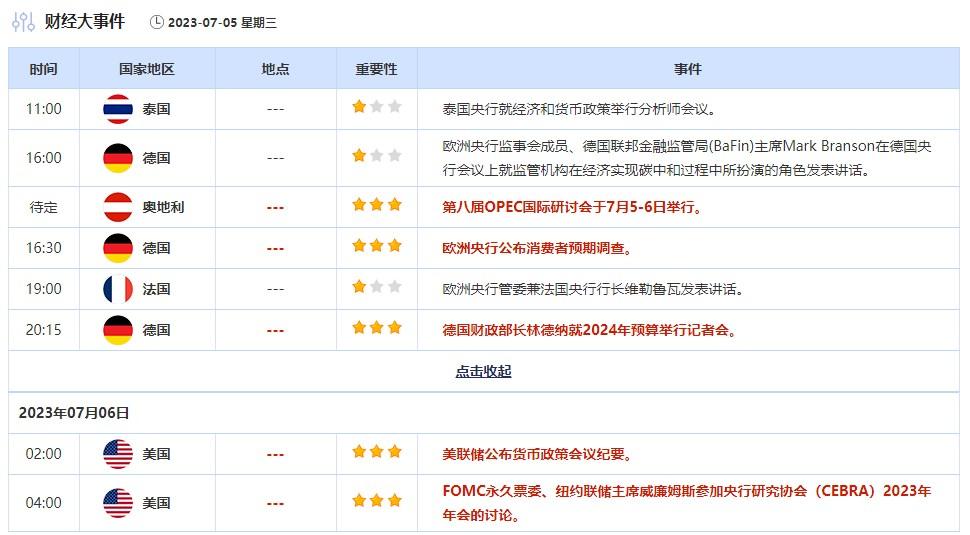 周二市场活动相对低迷,因美国市场适逢7月4日公共假期休市。投资者还在等待周五的美国非农就业报告,该报告可能影响美联储的下一步决定;另外,将于北京时间周四凌晨出炉的美联储会议纪要也吸引投资者的关注。