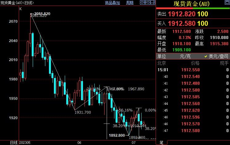 汇通财经APP讯——周五(7月7日),国际金价上涨,但周线有望四连阴,因美国就业市场强劲且美联储政策制定者发表鹰派言论,强化了投资者对美国长期利率上升的押注,从而压制了非孳息资产黄金的收益。金价料跌破1906美元。
