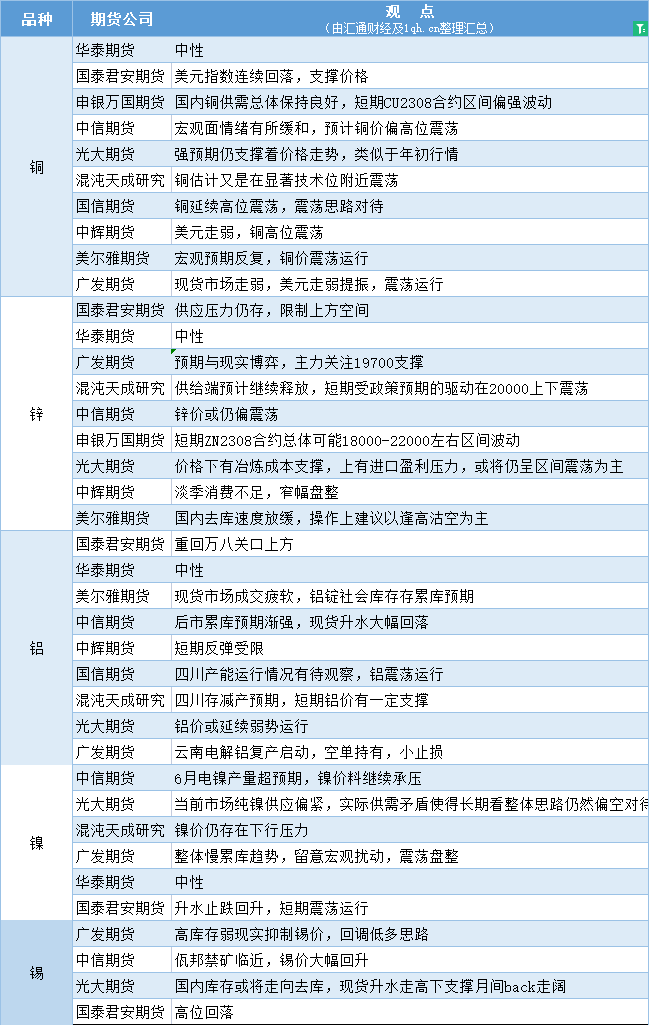 汇通财经APP讯——期货公司观点汇总一张图:7月11日有色系(铜、锌、铝、镍、锡等)