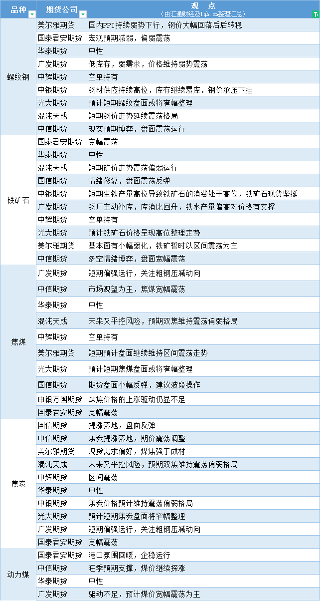 汇通财经APP讯——期货公司观点汇总一张图:7月11日黑色系(螺纹钢、焦煤、焦炭、铁矿石、动力煤等)