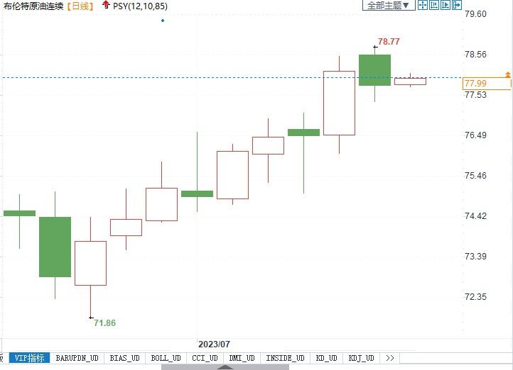 北京时间7月11日10:38,布伦特原油主力合约价格报78美元/桶。