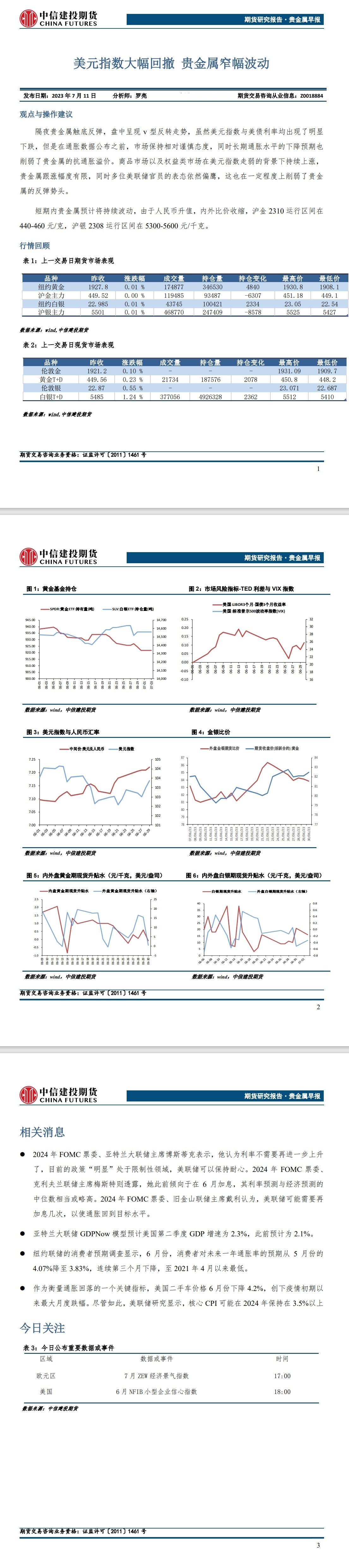 标题:中信建投期货7月11日贵金属日报:美元指数大幅回撤 贵金属窄幅波动