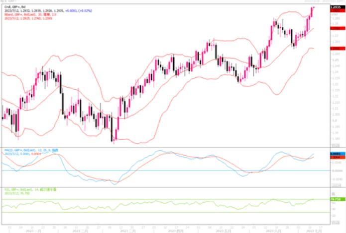 周二(7月11日)英镑兑美元稍早触及近15个月最高的1.2938,当日收盘涨幅0.58%,最终收盘在1.2935。英国国家统计局周二公布的数据显示,截至5月的三个月,英国扣除奖金的工资较上年同期增长7.3%,与记录上的最高增长率并列,这可能会加剧英国央行的通胀担忧。经济较预期强劲和市场激进地重新消化对英国央行收紧政策的预期已经在推动英镑出现强力上升的趋势。4小时图上,英镑/美元继续以较好的斜率沿着短期均线之上向上延展,技术指标配合上扬,显示英镑短期内继续受到多头盘抬捧。上方继续发展的话,1.30目标不远矣!下方初步支撑上移至1.2770-1.2800区域。