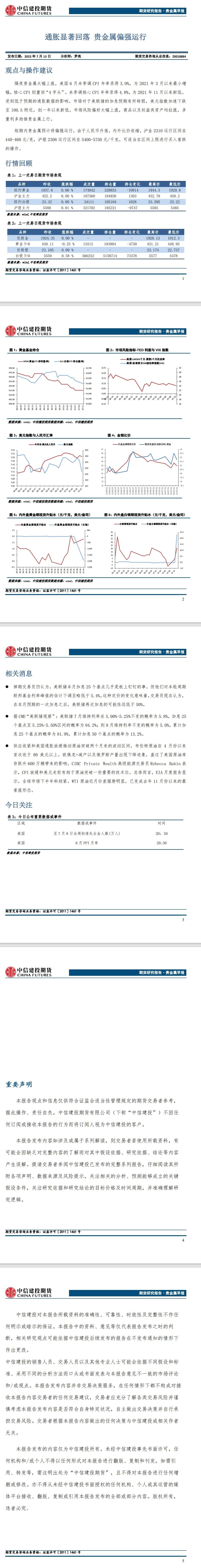 标题:中信建投期货7月13日贵金属早报:通胀显著回落 贵金属偏强运行