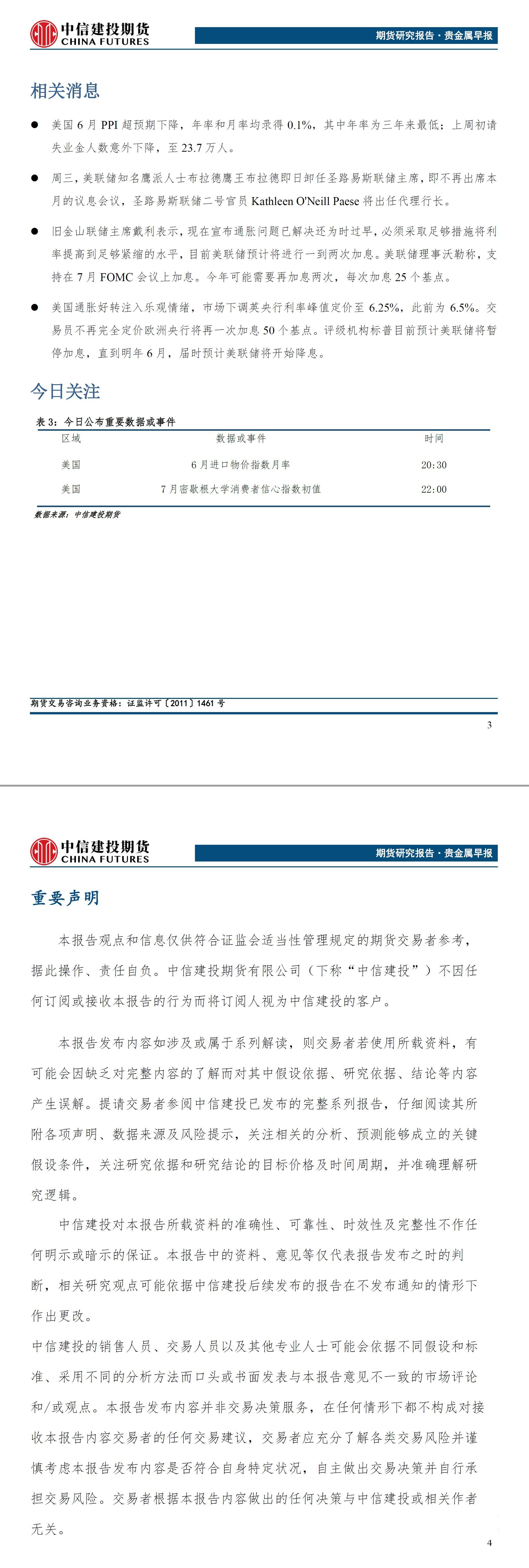 标题:中信建投期货7月14日贵金属早报:美元指数破百,贵金属持续上行
