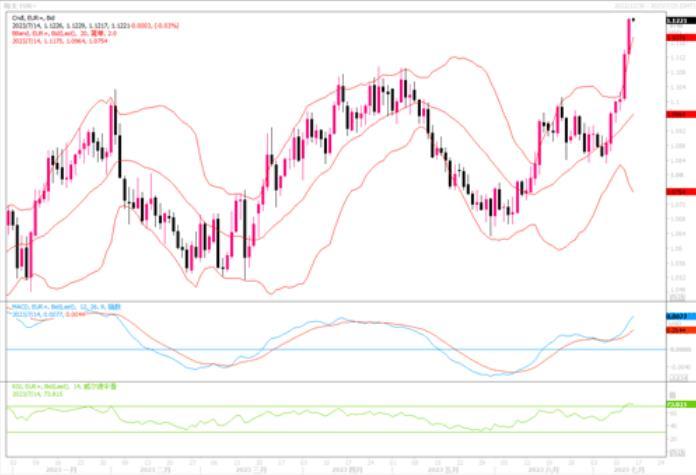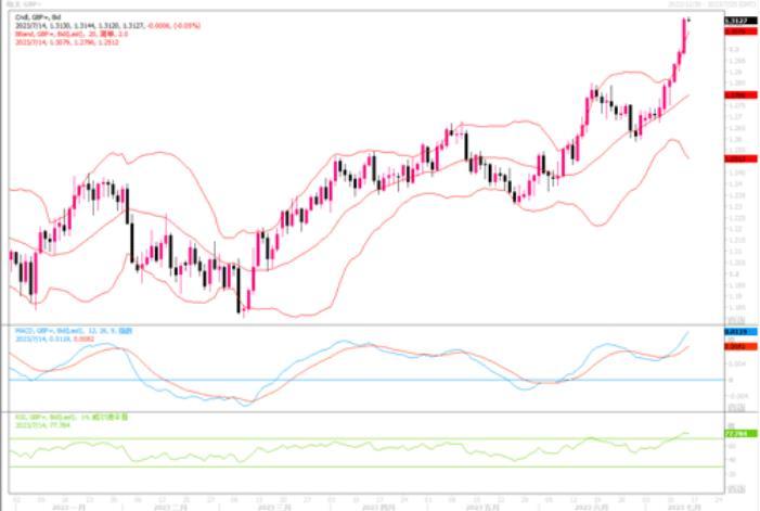 周四(7月13日)英镑兑美元连续第六个交易日上涨,最新攀升1.12%,报1.3135美元,自2022年4月中旬以来首次突破1.31美元关口,且盘中曾创下15个月来的新高1.3141。周四公布的数据显示,英国5月份经济萎缩0.1%,经济学家预期为萎缩0.3%,此前一个月为增长0.2%。显示英国5月份经济萎缩程度没有预期地那么严重,近期英国发布的每项数据似乎都不像市场预期的那么负面。这支持了英国央行有能力在不破坏经济增长的情况下进一步加息的观点。叠加美元因美国通胀降温而下跌,英镑受青睐程度继续升高。尽管英镑兑美元似乎进入了中期上涨趋势之中,但累积上升幅度较大,还是要继续防范短线回调的风险发生。上方若继续冲高,目标将是去年的高点1.33附近。而当前的下方初步支撑则进一步上移至1.30附近,进而在1.29。