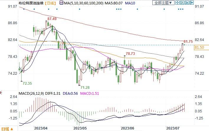 北京时间7月14日15:22,布伦特原油连续报81.98美元/桶