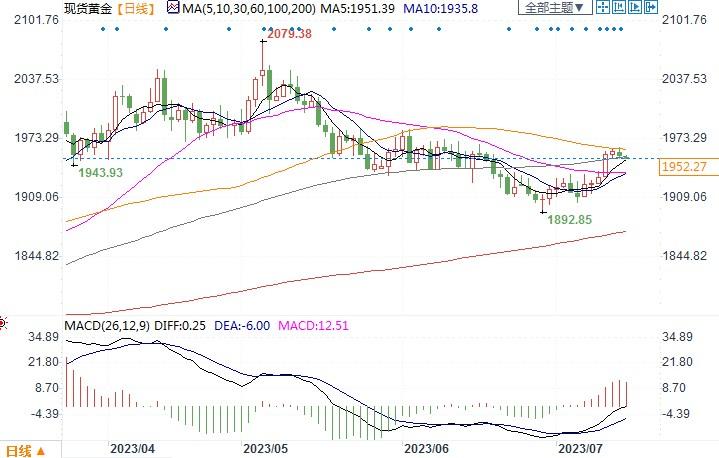 北京时间7月17日11:45,现货黄金报1952.01美元/盎司