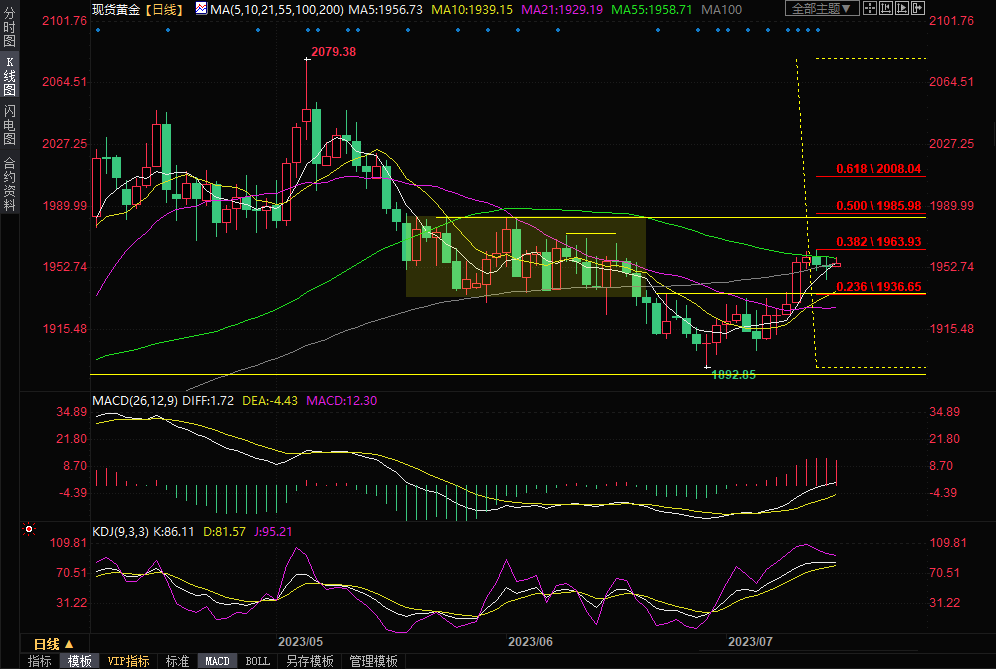 整体来看,市场目前相对清淡,一部分投资者会留意晚间的“恐怖数据”,更多的投资者开始等待下周的美联储决议,由于避险情绪的降温,美元跌势放缓,金价短线仍有进一步回调风险,但由于市场对美联储接近结束加息周期的预期挥之不去,金价回调空间料将受限,失守10日均线1939.13前,中线依然偏向多头。北京时间10:10,