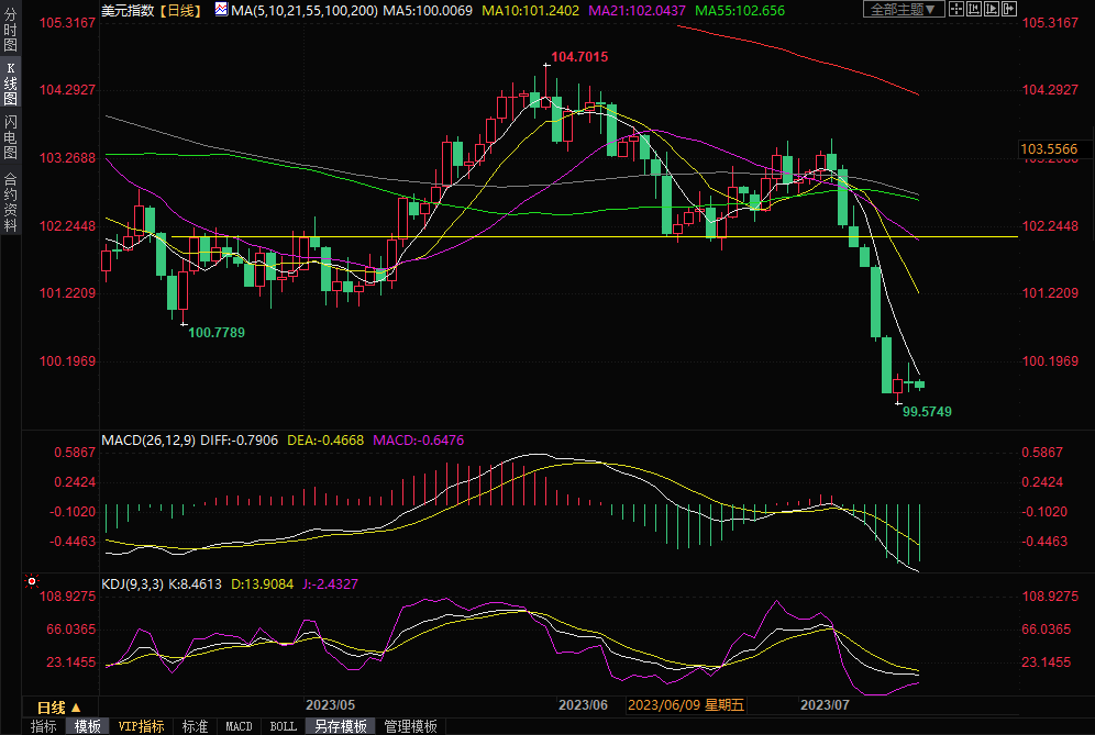 美元指数周一收盘微跌0.05%,收报99.90,上周五曾触及99.574的2022年4月以来最低。周二亚市,美元指数震荡微跌,截止10:10,目前微跌0.08%,交投于99.83附近。
