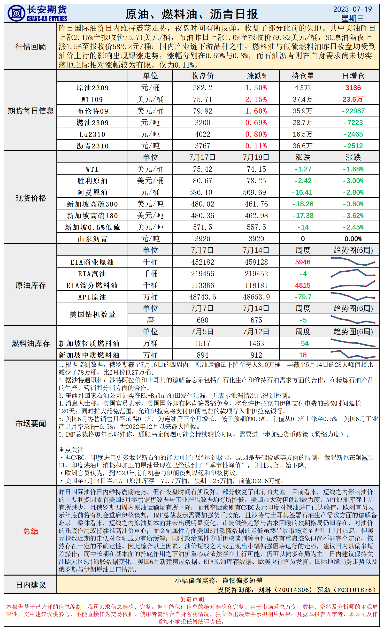 标题:长安期货7月19日原油日报:美元走弱油价反弹,基本面托底或仍存布多机会