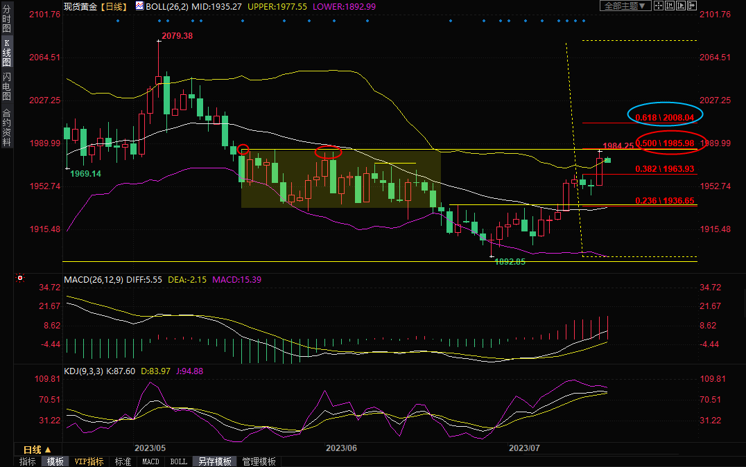 技术面来看,短线看涨信号进一步增强,若能顶破1985.98附近阻力,该位置是2079-1892跌势的50%回撤位,则金价有望进一步上探2000整数关口附近阻力,甚至是61.8%回撤位2008.04附近。下方短线留意5日均线1965.13附近支撑。