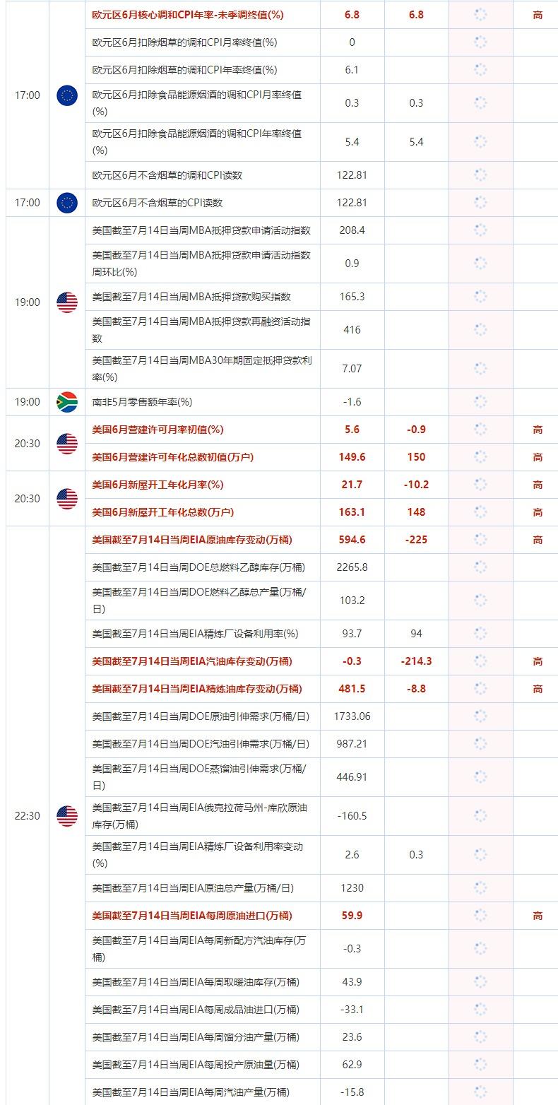 后续及时更新的财历数据请关注:【汇通财经7月19日财经日历】