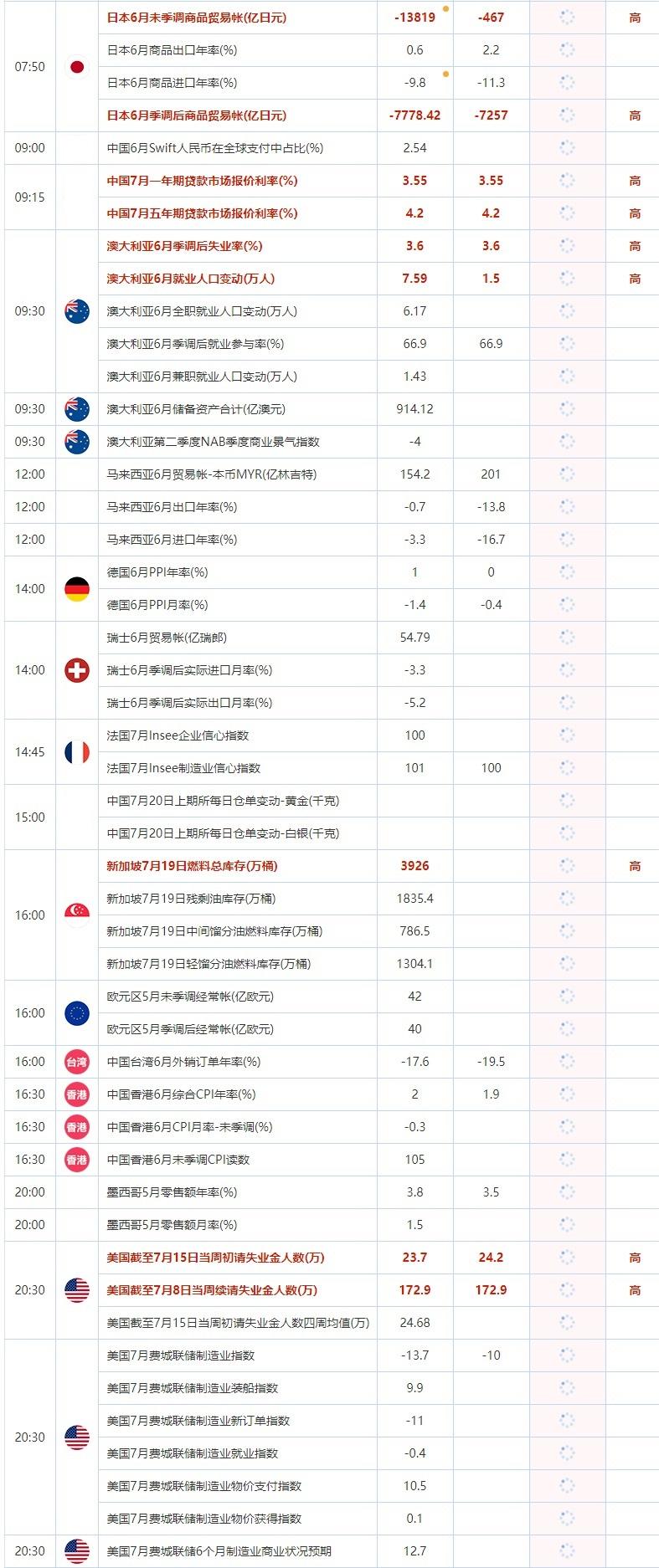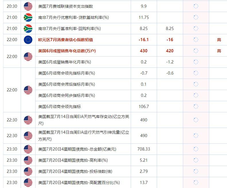 后续及时更新的财历数据请关注:【汇通财经7月20日财经日历】