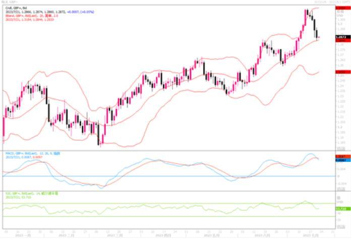 周四(7月20日)欧元兑美元下跌0.67%,至1.1127美元。周四美国劳工部称,截至7月15日当周,经季节性因素调整后初请州失业金人数下降9,000人,为22.8万人。接受路透访查的经济学家此前预测为24.2万人。数据公布后,市场认为美联储在普遍预期的下周加息25个基点后继续加息的概率提高。联邦基金利率期货交易员认为还将进一步加息34个基点,周三的预期为32个基点。受上述数据以及利率预期的影响,周四当日美元兑一篮子货币周四上涨。就欧元近期回落走势来看,虽然有受基本面消息的影响,更多是技术上的调整。4小时图上,欧元/美元继续处于高位获利回吐的调整下落行情之中,技术指标继续下摆。下方初步支撑在1.11,若进一步下跌,更关键的支撑在1.10。而日线图上,整体上欧元/美元尚保持在布林带中轨线远上方,上升轨道维持完好。后续若是有利好消息,不排除继续攀高的可能性。