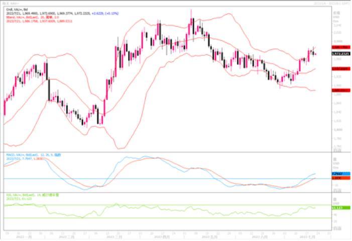 周四美国劳工部称,截至7月15日当周,经季节性因素调整后初请州失业金人数下降9,000人,为22.8万人。接受路透访查的经济学家此前预测为24.2万人。数据公布后,市场认为美联储在普遍预期的下周加息25个基点后继续加息的概率提高。联邦基金利率期货交易员认为还将进一步加息34个基点。在美国关键的通胀数据相继出现明显增幅回落的大趋势下,周四的这项数据应起不到太大的扭转市场预期7月之后美联储将停止加息的市场预期。美联储前主席伯南克周四就曾说到:普遍预期中的美联储下周加息,可能是本轮紧缩行动中的最后一次。伯南克表示,随着租金上涨消退和汽车价格下跌,他预计未来六个月通胀“更持久”地下降至3%至3.5%的区间。到明年初,通胀率将降到接近或略高于3%的水平,谈到就业市场时,伯南克表示,虽然职位空缺数量有所下降,但相对于每个被算作失业的人员,仍有大约1.6个空缺职位。这位前美联储主席表示,作为抗击通胀的代价,美国可能会遭遇经济放缓,但他强调任何衰退都可能是温和的,大家会看到的是失业率非常温和的上升和经济略微放缓。仅从昨日黄金的走势表现来看,黄金受数据打压情况并不严重,黄金依然维持在近期反弹的高位区域,显示黄金多头仍旧韧性十足。