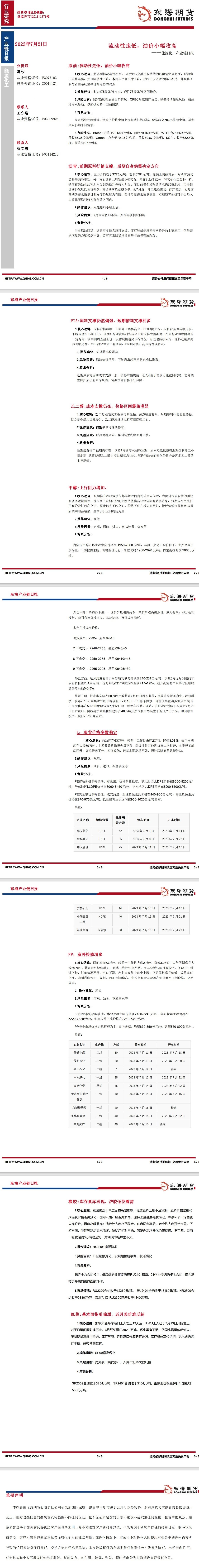 标题:【东海期货7月21日产业链日报】能化篇:流动性走低,油价小幅收高
