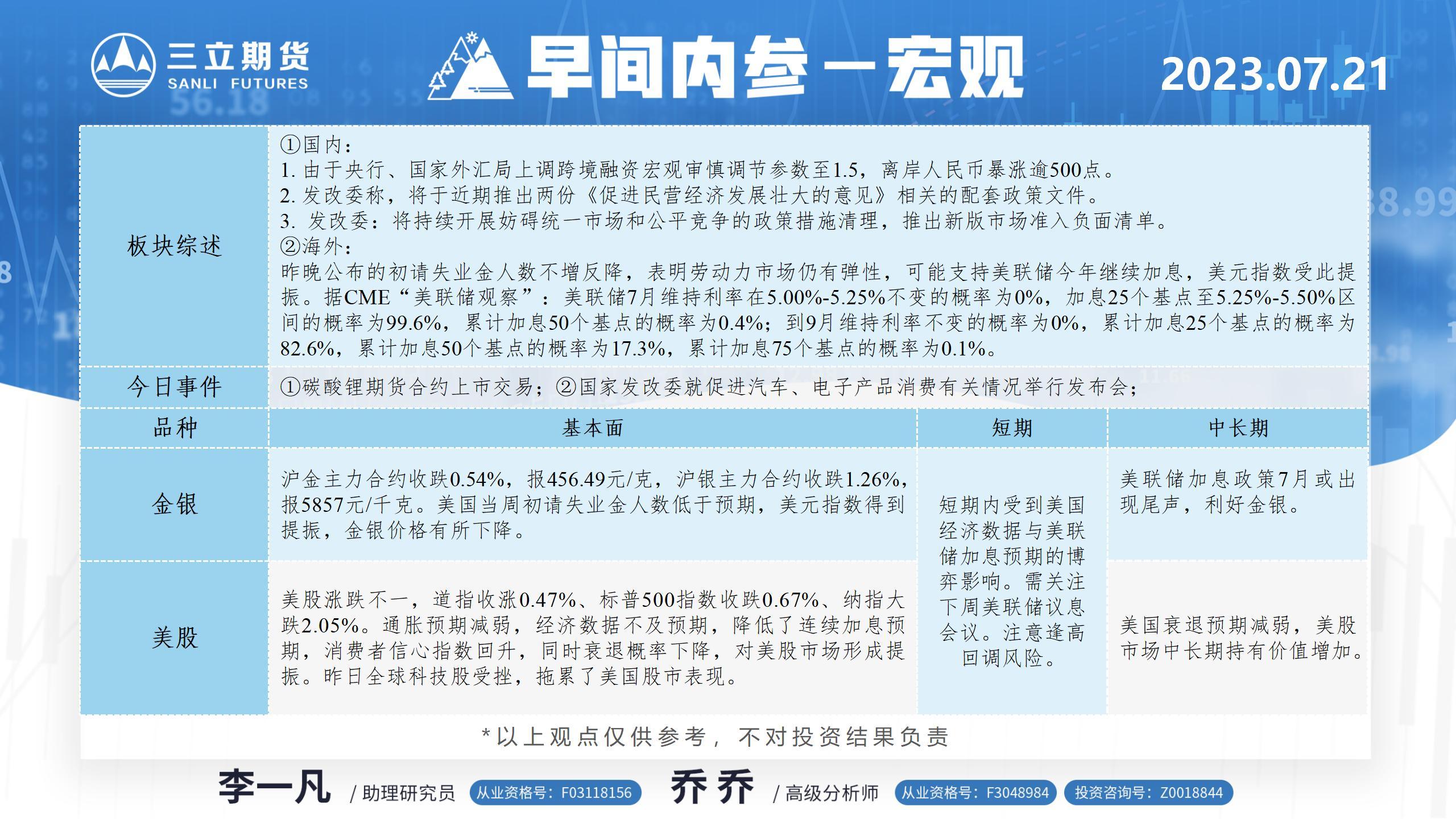 标题:三立期货7月21日早间内参——宏观