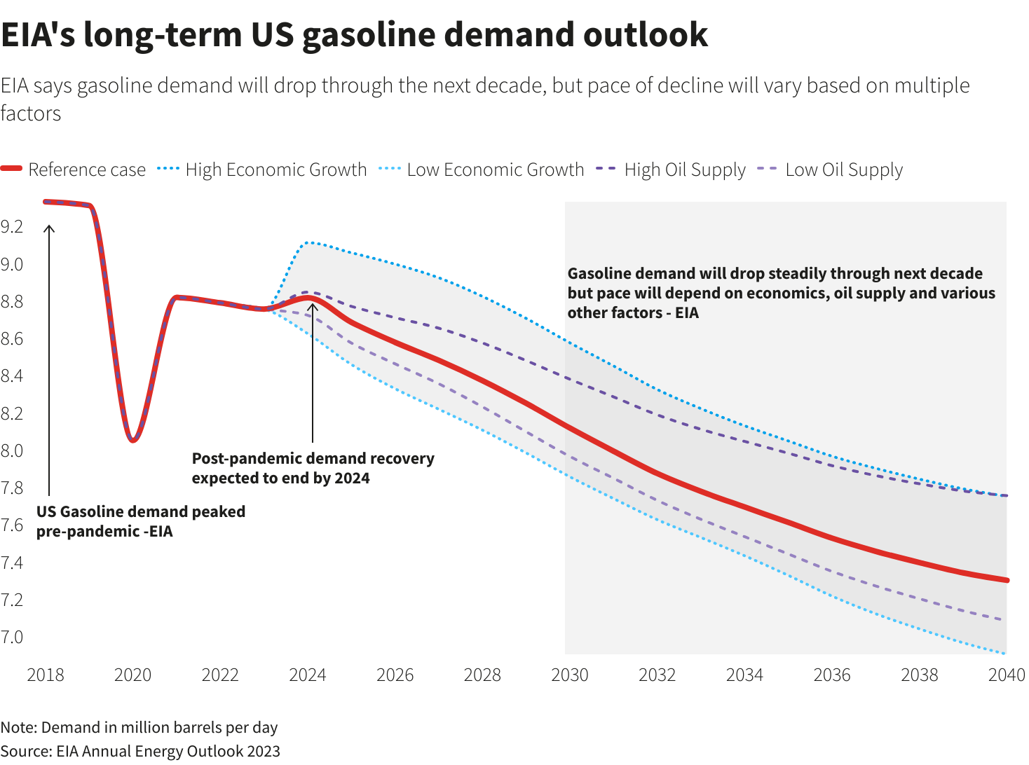 转型、政策、经济表现和消费者偏好之间复杂的相互作用,使得预测汽油需求比以往任何时候都更加困难。而对炼油商的生产和产能决策以及监督转型的政策制定者来说,这些预测非常重要。如果炼油厂关闭产能的速度快于需求下降的速度,驾车者可能面临更高的燃料价格,甚至是短缺。
