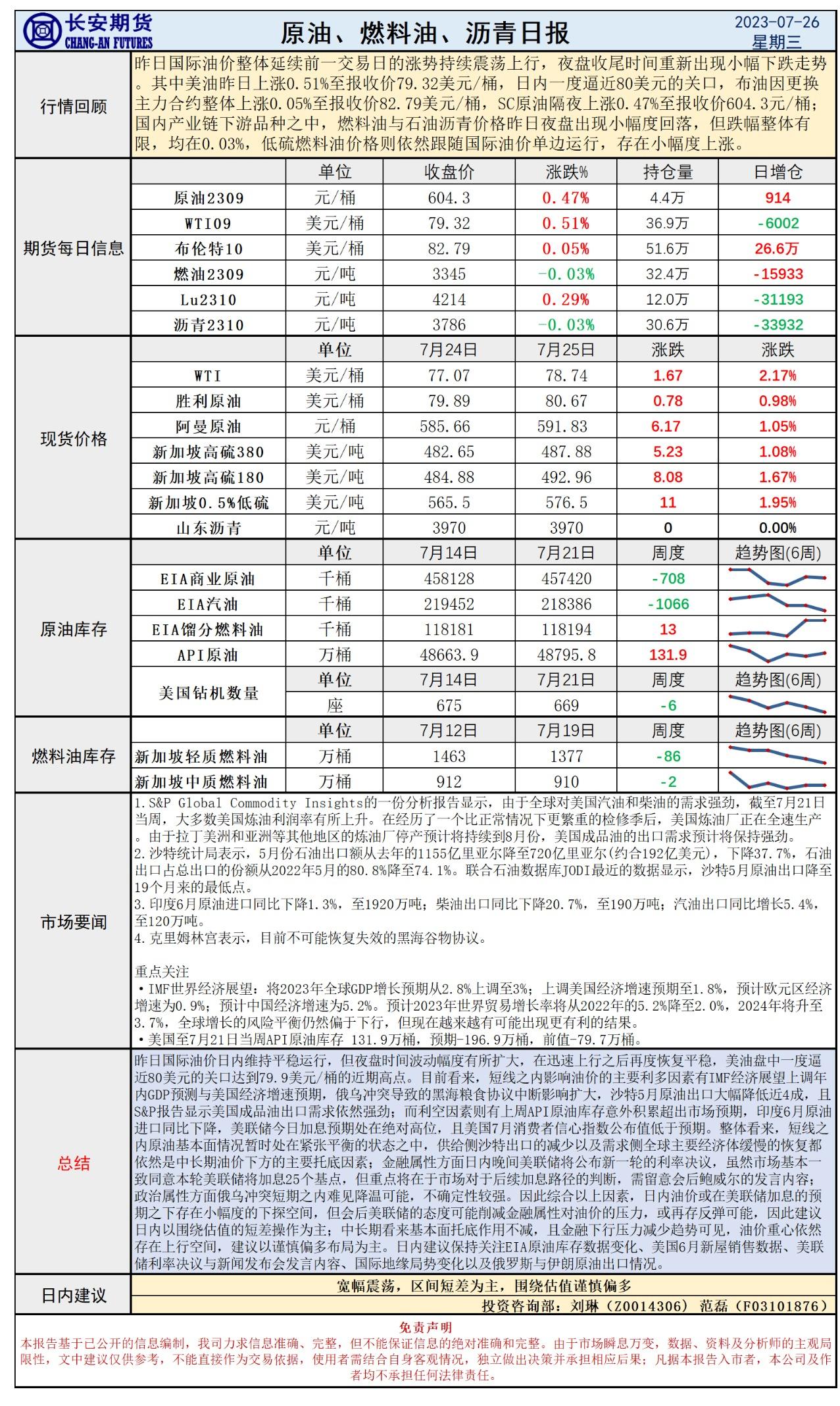 标题:长安期货7月26日原油日报:7月加息来临关注后续路径预测,油价高位之际或仍存上探可能