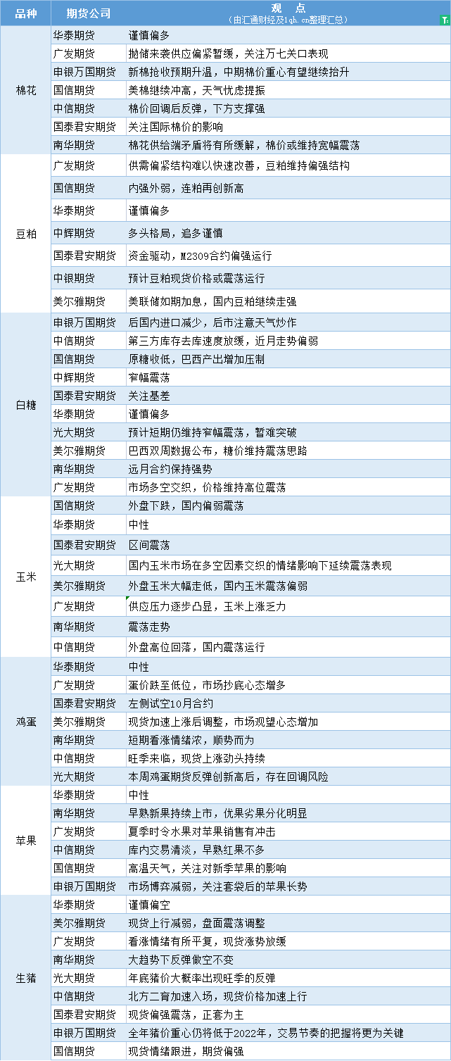 汇通财经APP讯——期货公司观点汇总一张图:7月27日农产品(棉花、豆粕、白糖、玉米、鸡蛋、生猪等)