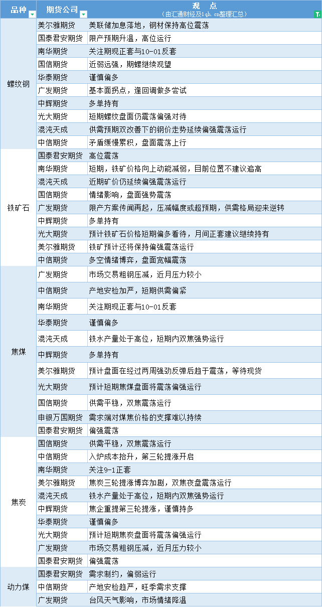 汇通财经APP讯——期货公司观点汇总一张图:7月27日黑色系(螺纹钢、焦煤、焦炭、铁矿石、动力煤等)