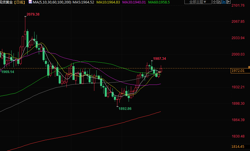 现在的焦点转向欧洲央行和日本央行将于本周稍晚做出的政策决定。纽约独立金属交易商Tai Wong表示:“名义上,多头仍是金市的主流,但他们需要推动金价回到每盎司1988美元的近期高位上方,以保持动能。”