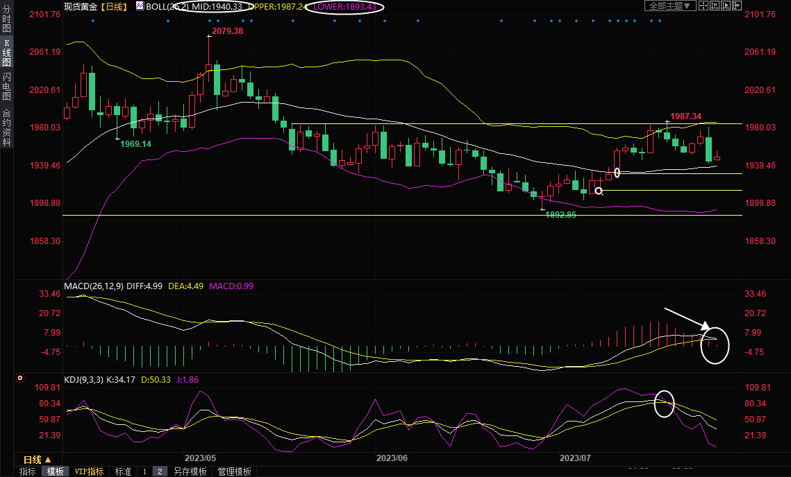 技术面来看,短线看空信号有所增强,关注布林线中轨1940关口附近支撑,若跌破该支撑,则金价可能会加速下跌,在跌破1940关口前,仍需提防多头重拾涨势的可能性。