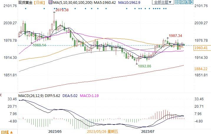 北京时间8月1日11:24,现货黄金报1961.09美元/盎司