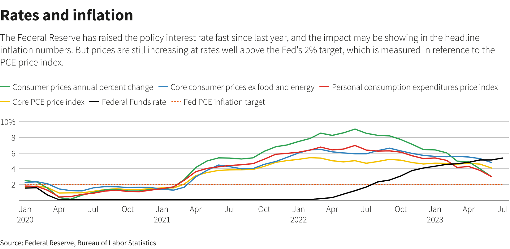 经过16个月的快速货币紧缩后,第二季度经济增速仍快于预期,环比年率为增长2.4%,而且这一势头预计将持续到本季度。第二季度劳动力成本同比上涨4.5%,较疫情期间的高点再次下降,但也高于美联储认为符合其2%通胀目标的水平。