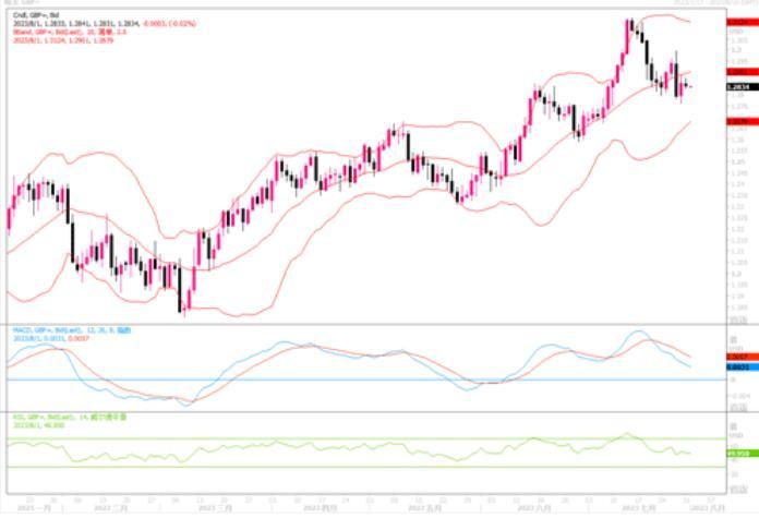周一(7月31日)英镑兑美元微下跌0.15%,收盘在1.2835水平。在英国央行周四做出利率决定之前,交易员削减了对英镑继续反弹的押注,减仓幅度为6月中旬以来最大。美国商品期货交易委员会(CFTC)上周五公布的数据显示,在截至7月25日的当周,资产管理公司和机构投资者在期货市场上的英镑净多头头寸减少了27%,从前一周创下的47,747口的历史高位降至34,669口。英国方面,因通胀数据表现顽强,加上经济成长数据表现强劲,强化了英国央行在压低通胀方面还有更多工作要做的预期心理。但对于本周的加息,经济学家和交易员的意见产生了分歧。经济学家普遍预期仅加25个基点,而交易员则预期是加50个基点。在几个主要发达经济体中,对于英国的加息幅度以及利率峰值是期盼值最高的。如果本周英央行仅加息25个基点,则一定程度上会削弱英镑的吸引力,令英镑有所走软。日线图上,英镑/美元受压于短期均线下方,目前仍企图维稳于1.28之上,但技术指标仍未有转向迹象,处于下摆之中。英央行利率会议前,留意1.28水皮的支撑,若跌破,英镑/美元将进一步下行一线,下方将考验6月份到过的低点1.26附近的支撑。