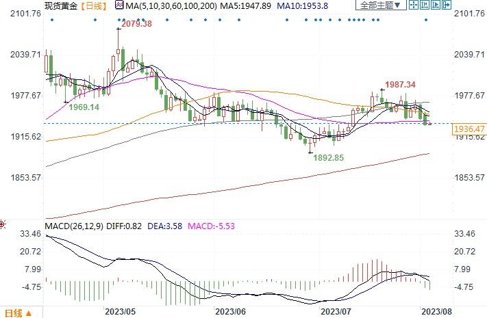 北京时间8月3日11:35,现货黄金报1936.24美元/盎司