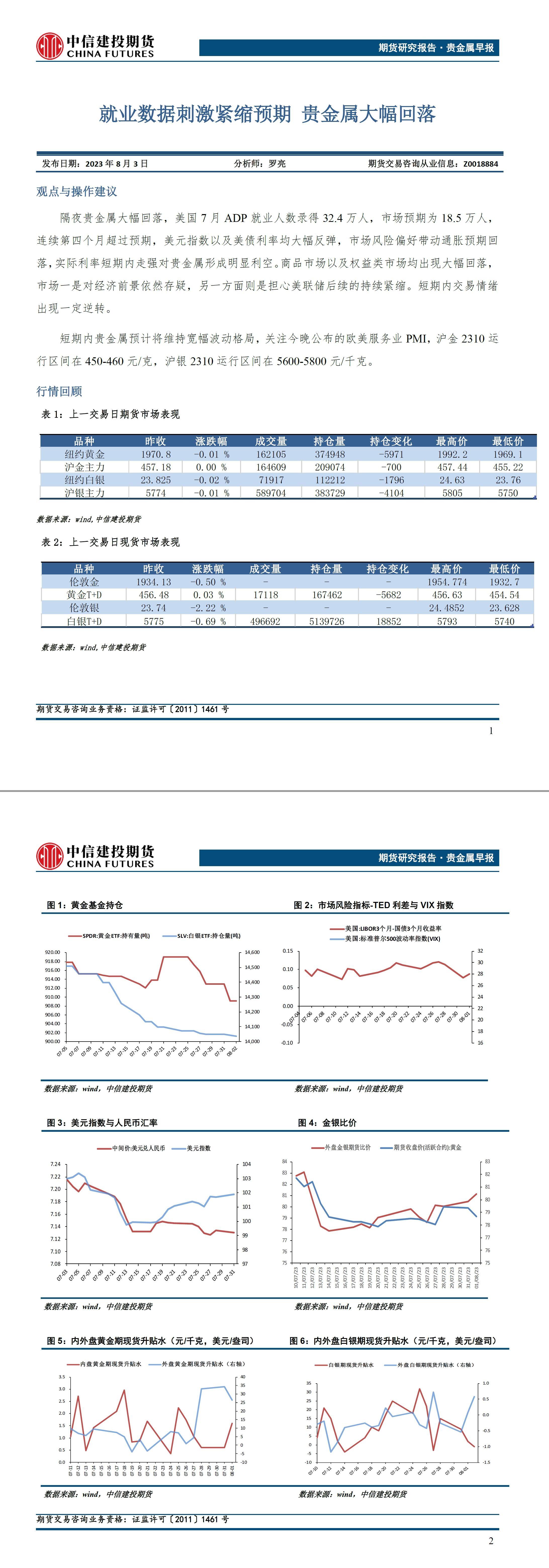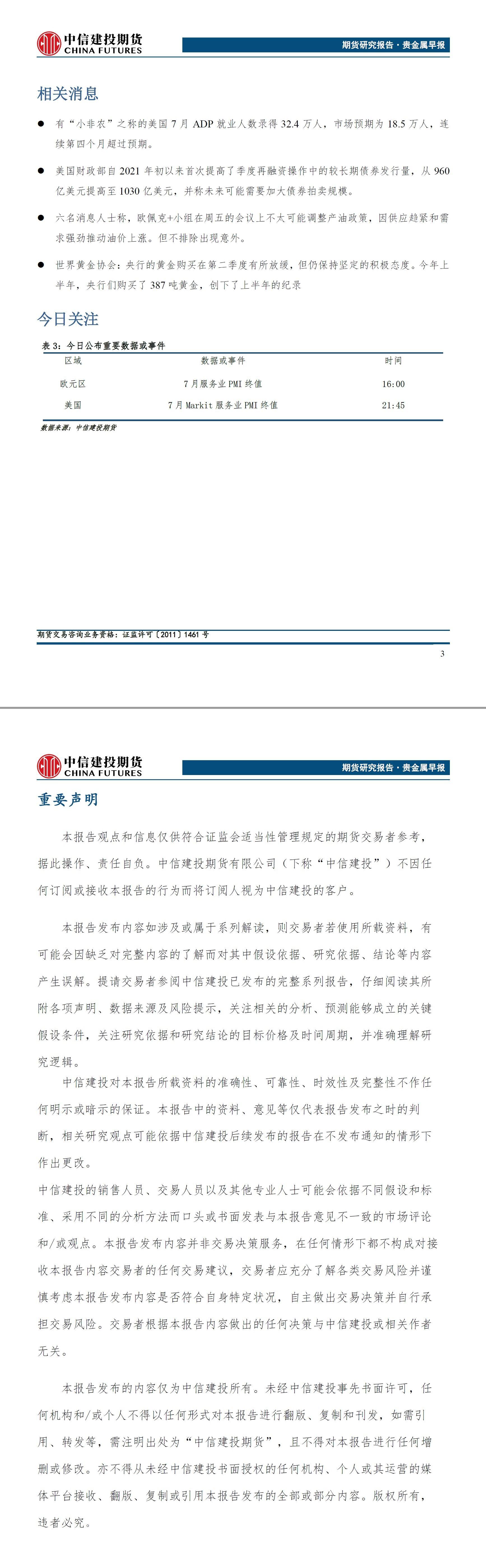 标题:中信建投期货8月3日贵金属早报:就业数据刺激紧缩预期,贵金属大幅回落