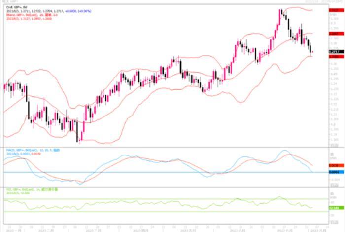 周三(8月2日)英镑兑美元当日下跌0.45%,报1.272美元,盘中最低触及1.2681。隔夜市场上,由于受到私企极为强势增长的就业报告抬捧,美元继续呈强势回升,英镑为此继续大幅度下滑。虽然本周四将迎来英国央行的利率会议,但对于加息的幅度,市场意见颇有争议。一方意见认为,自英国央行上次会议以来,7月公布的通胀数据显示,英国6月消费者物价较上年同期涨幅降至7.9%,低于预期,但在七国集团(G7)经济体中仍然是最高的。因此,英央行本周会议仍有可能要继续加息50个基点。对于这种意见,货币市场给出的概率只有37%。另一种意见认为,数据显示经济增长乏力。周二的一项调查显示,尽管价格压力减弱,但受利率上升和新订单减少的影响,7月份英国制造业产出以七个月来最快的速度萎缩。再加上英国通胀出现缓解迹象,预计英国央行将加息25个基点。货币市场对于25个基点升息预期给出的概率为63%。如果周四英央行仅加息25个基点,料将给不到英镑太大的抬捧作用。若加息50个基点,或能暂时稳住近期大幅下滑的势头。日线图上,镑美继续呈下跌走势逼近布林带通道下轨,技术指标继续下摆之中,显示英镑的抛盘压力唯有改观的迹象。需继续防范镑美的进一步走低风险。