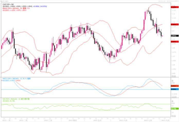 周三(8月2日)衡量美元兑六种主要货币的美元指数上涨0.57%,创三周新高。美元指数已从7月18日触及的15个月低点上涨了3.0%。欧元兑美元下跌0.37%,至1.0941美元,盘中最低触及1.0914。周三当天,美国ADP全国就业报告显示,上月民间就业岗位增加32.4万个,高于路透调查经济学家预测的增加18.9万个。在美联储从2022年3月开始累计加息525个基点后,美国经济依然强劲,亚特兰大联储的GDPNow预计第三季度实际国内生产总值(GDP)料增长3.9%。在良好经济数据助力下,美元近期展开了较强的反弹回升走势。其强势表现的经济数据将有可能迫使美联储维持甚至继续调升本已处历史高水平的利率。在近期强势美元的压迫下,叠加欧元区出现黯淡的经济前景预期,欧元被动地呈现下跌走势。如果周五美国非农数据也表现强劲,欧元恐将承压进一步走软。日线图上,60日均线1.09附近的支撑显得较为关键,若进一步跌穿该水位的支撑,下方将考验1.0830附近的支撑,进一步的话则威胁年内5月底低位1.06附近。