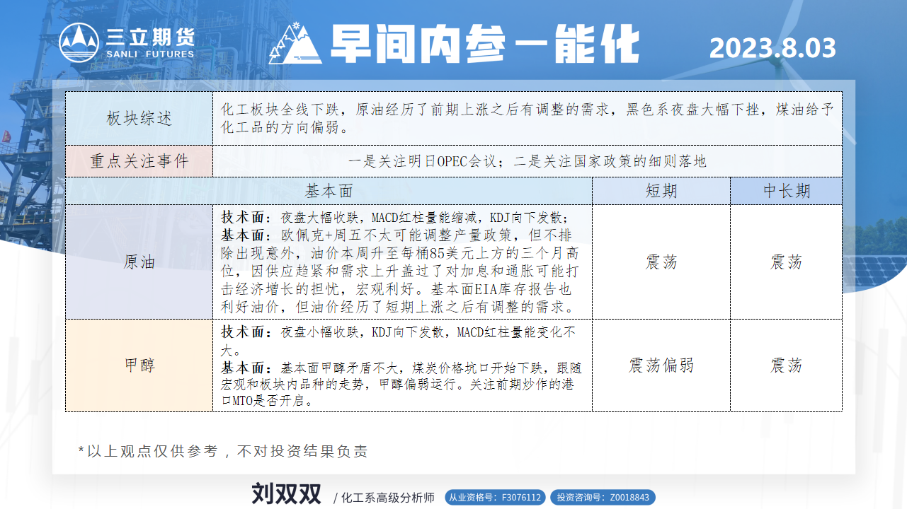 标题:三立期货8月3日早间内参——能化