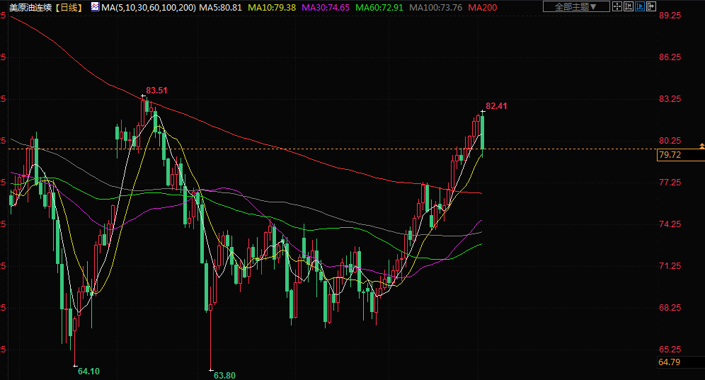 商品收盘情况:美国期金收低0.2%,报每盎司1975美元。美国原油期货收跌2.3%,结算价报每桶79.49美元;布伦特原油期货收跌2%,结算价报每桶83.20美元。