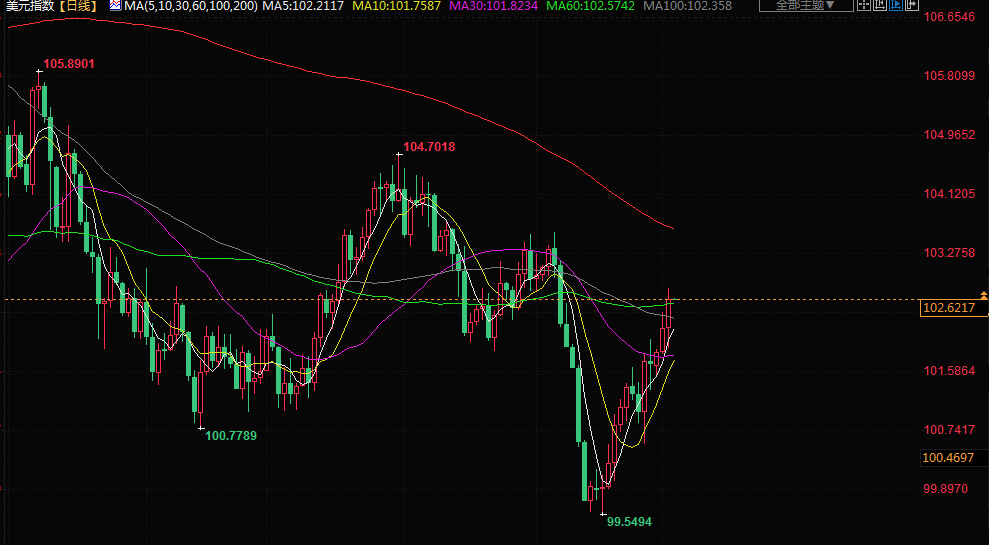 美元上涨0.3%,达到三周多来的高点,指标美国10年期公债收益率攀升至2022年11月以来的最高水平。