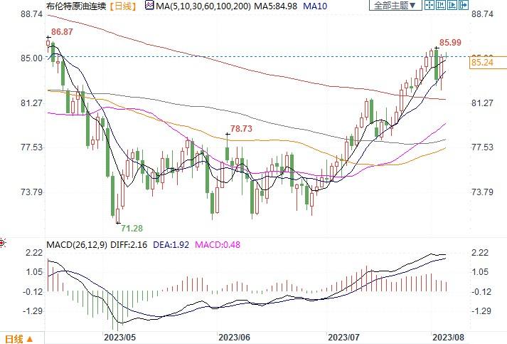 北京时间8月4日11:45 布伦特原油连续 报 85.24 美元/桶