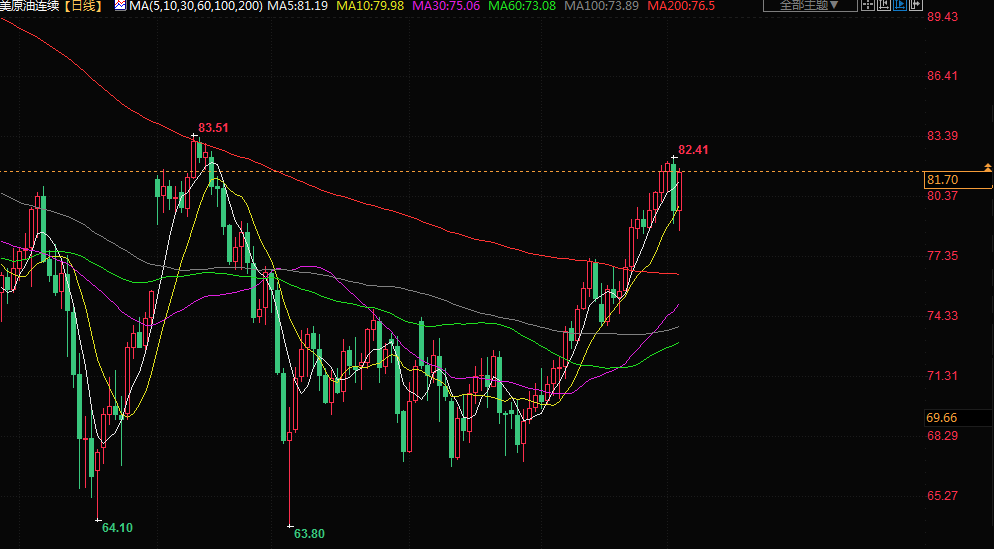 商品收盘情况:美国期金下跌0.3%,结算价报每盎司1968.80美元。布伦特原油期货上涨2.3%,收报每桶85.14美元,美国原油期货跳涨2.6%,收报每桶81.55美元。